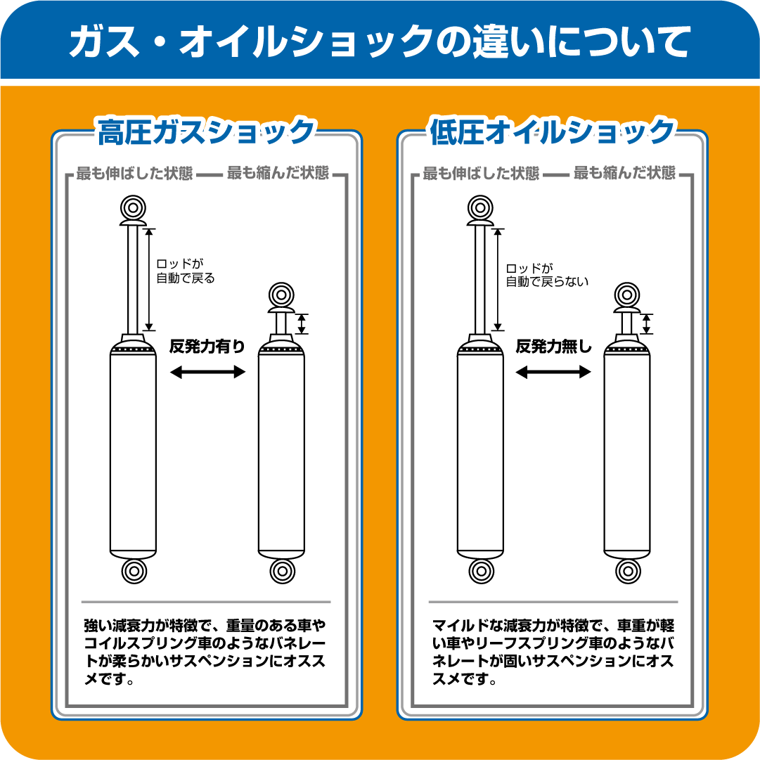 ≪スペック≫ ・ツインチューブ 高圧ガスショック ・1-3/8”ピストン ・5/8”クロームメッキピストンロッド ・42mm/52mm/60mmボディー(品番によって異なります) ≪サービス≫ ・ショックにはあらかじめ専用ブッシュを組み込んだ状態で発送しますので、プレスなどによる圧入作業は不要です。