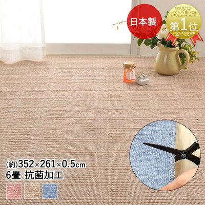 激安 じゅうたん 6畳 カーペット 防炎 江戸間 六畳 6帖 絨毯 6畳 ジュータン 約261×352cm ホットカーペット対応 ラグ マット 日本製 国産 お値打ち 防ダニ 抗菌 シンプル 無地 遊び毛が出にくい 絨毯 カラフルループ (Y) 半額以下 引っ越し 新生活