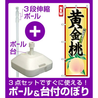 【プレゼント付】【3点セット】のぼりポール(竿)と立て台(16L)付ですぐに使えるのぼり旗 (7407) 黄金桃